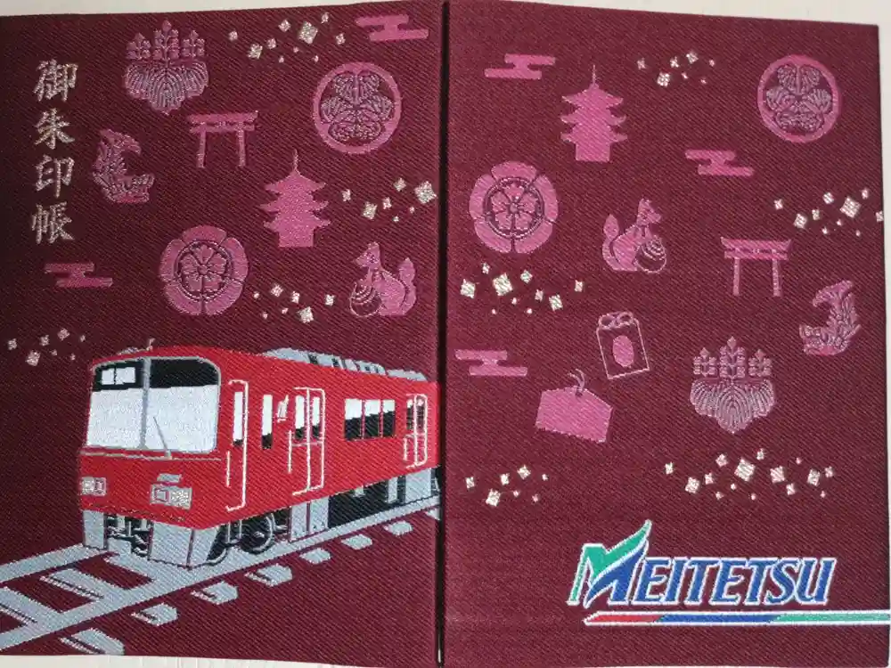 ホトカミプロデュース。名鉄車両、名古屋電鉄ロゴ、織田御紋織田木瓜、豊臣御紋五七の桐紋、徳川葵の御紋、しゃちほこ、鳥居、稲荷の狐、三重塔、絵馬、お守りの絵