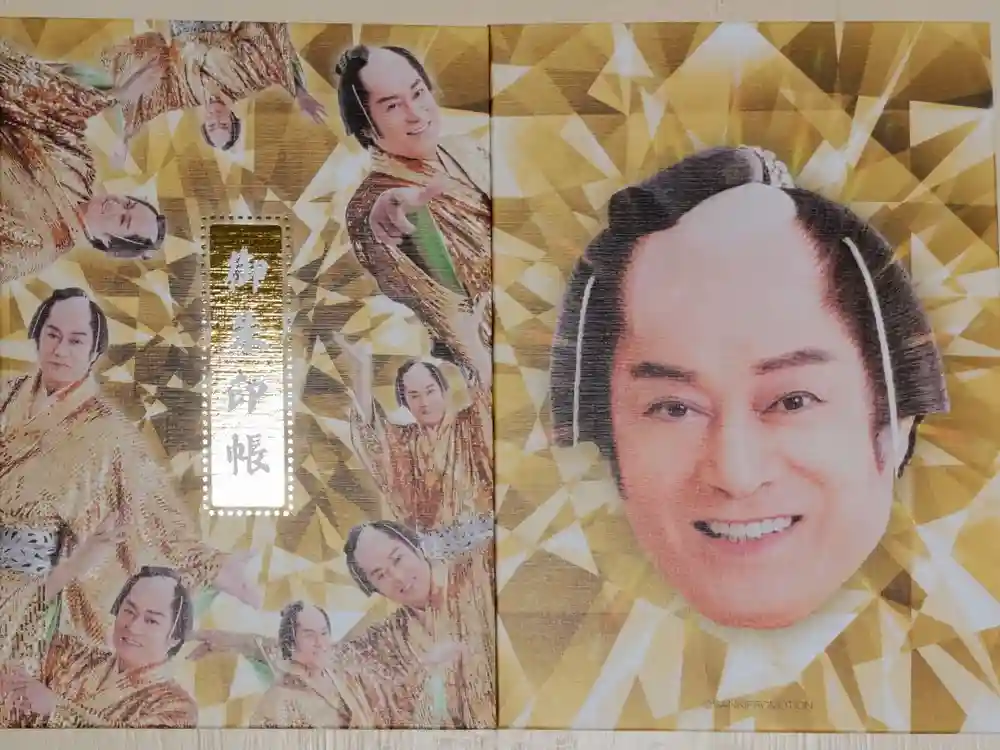 マツケンサンバポップアップストア池袋駅構内で購入。通常御朱印の半分のページ数でかさばらず小旅行に良いコンパクトさ。表紙は紙製、タイトル金箔押し。神社お寺でお書き入れお願いする気概のある勇者以外は書き置き専用にした方がいいかも。