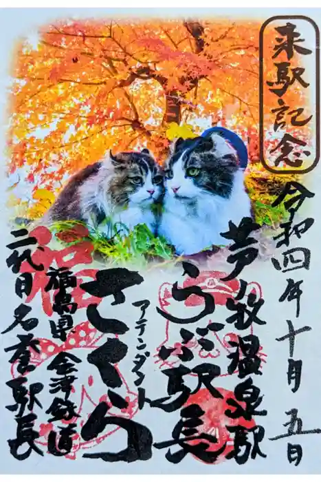 令和4年 芦ノ牧温泉駅 来駅記念 猫御朱印 月替わり御朱印 10月 『らぶ駅長&アテンダントさくら』 初穂料 500円