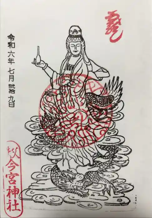 社殿前に置かれた神社御由緒のしおりから切り抜いて貼り付ける珍しいスタイル 元号のみ記載されてるので、年月日は自分で記入。