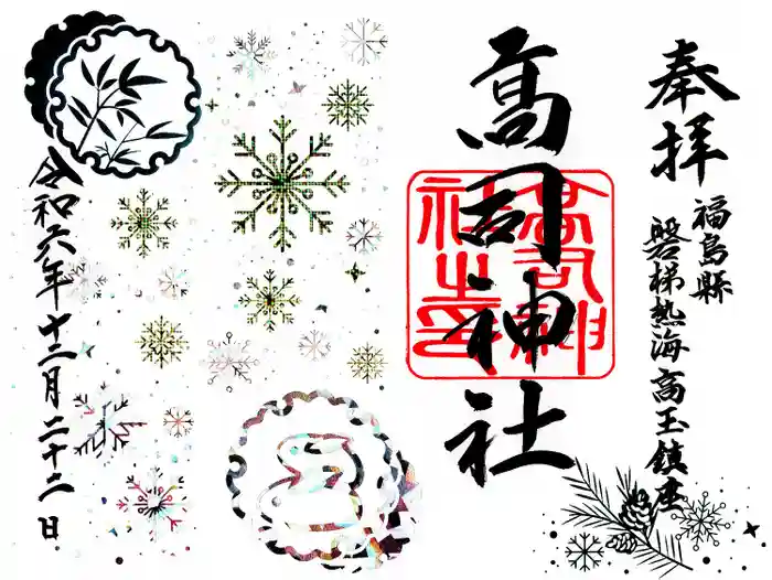 高司神社(箔押し)の御朱印帳(3冊目)へ