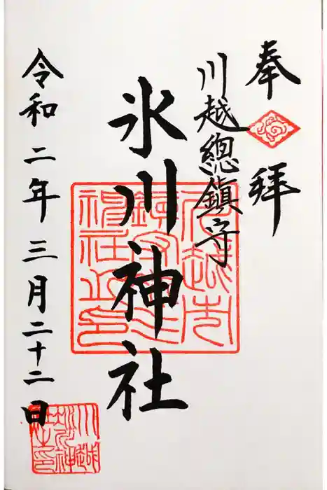 川越氷川神社(埼玉県)の御朱印帳(3冊目)へ