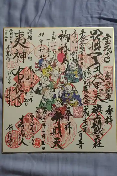 #鎌倉江の島七福神巡り ・七福神巡りですが、弁天様を二つお参りするので八社を巡ります。寄り道をしないで5時間位必要です。 専用の飾り色紙(1000円)に七福神が勢揃いしているのは圧巻です。 #浄智寺 #旗上弁財天 #宝戒寺 #妙隆寺 #本覚寺 #長谷寺 #御霊神社 #江島弁財天