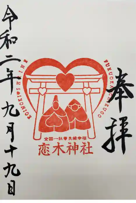 恋木神社(福岡県)の御朱印帳(122冊目)へ