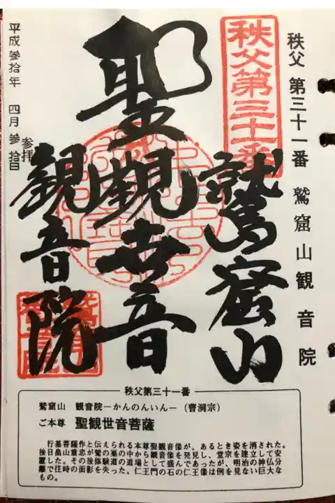 秩父観音霊場31番札所。曹洞宗。ご本尊は行基作とされる聖観音。