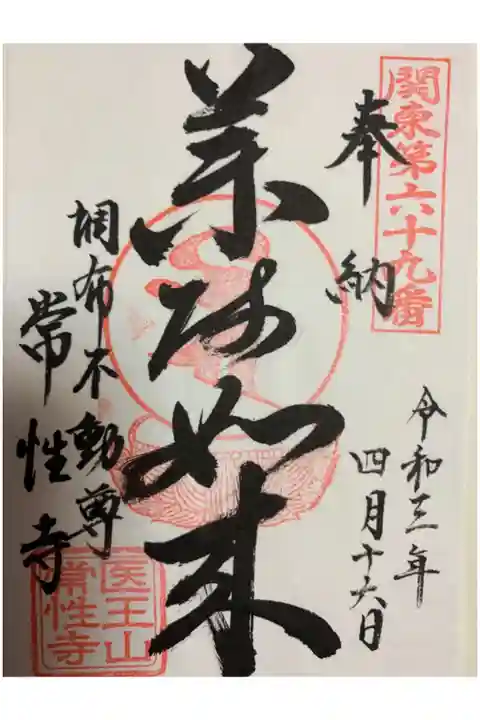 真言宗豊山派寺院の常性寺は、医王山長楽院と号します。常性寺の創建年代は不詳ですが、鎌倉時代に多摩川沿いに創建したと伝えられています。慶長年間に旧甲州街道沿いの当地へ移転、祐仙法印が成田山新勝寺より成田不動尊を勧請し中興したといい、調布不動尊と称されています。関東八十八ヶ所69番、多摩八十八ヶ所6番札所、調布七福神の布袋尊となっています。