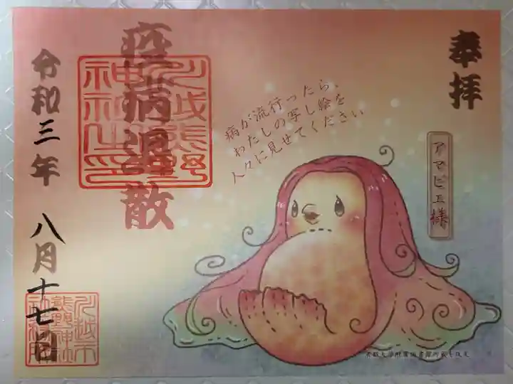 「八咫烏特別御朱印」の「導」と、アマビエ様の御朱印を頂きました。
