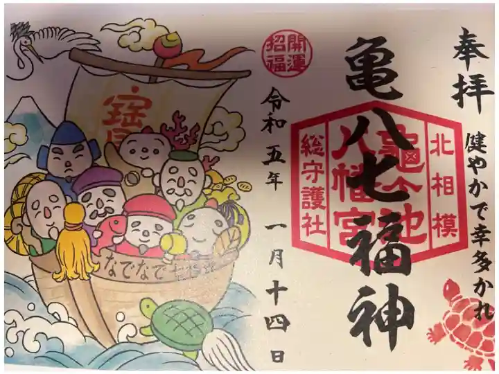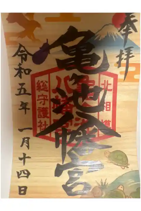 亀ヶ池八幡宮の創建年代等は不詳ながら、暦応2年(1339年)には社殿を再建され、溝地区の鎮守として古くより崇敬されてきたといいます。慶安2年(1649)には江戸幕府より社領7石の御朱印状を受領、明治42年には神饌幣帛料供進神社に指定され、戦後の昭和43年には旧相模原市域で唯一献幣使派遣神社に指定されています。社号の「亀ヶ池」は社の東側にあった池に亀がたくさんいたことから、明治2年に亀ヶ池八幡宮と称しています。