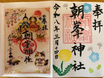 朝峯神社に初参拝いたしました! 御朱印をいただける授与所には御守りもたくさんありました。 書き入れと3月限定の透かし御朱印をいただきました😊
