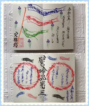 まだまだコロナが広がっていて、県を越えての移動が出来ないため、郵送で御主題をお願いしました☺️R3年5月13日に届きました🙏 五月ということで鯉のぼりに御題目が書かれていて、大好きな菖蒲…続きを読む