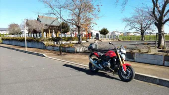 BMW motorradのR1200Rで神社を巡っております。人の少ない時間帯を選んで、鳥居の前に車輌を停めて撮影。