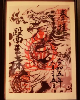 個展開催の記念の作家さんとの限定コラボ御朱印です。 本堂の中は素敵な絵画とご本尊さまとの幽玄でアートな非日常的空間。開運の昇龍だそうで迫力満点です。 記念御朱印は現在もいただけるのでぜひ皆…続きを読む